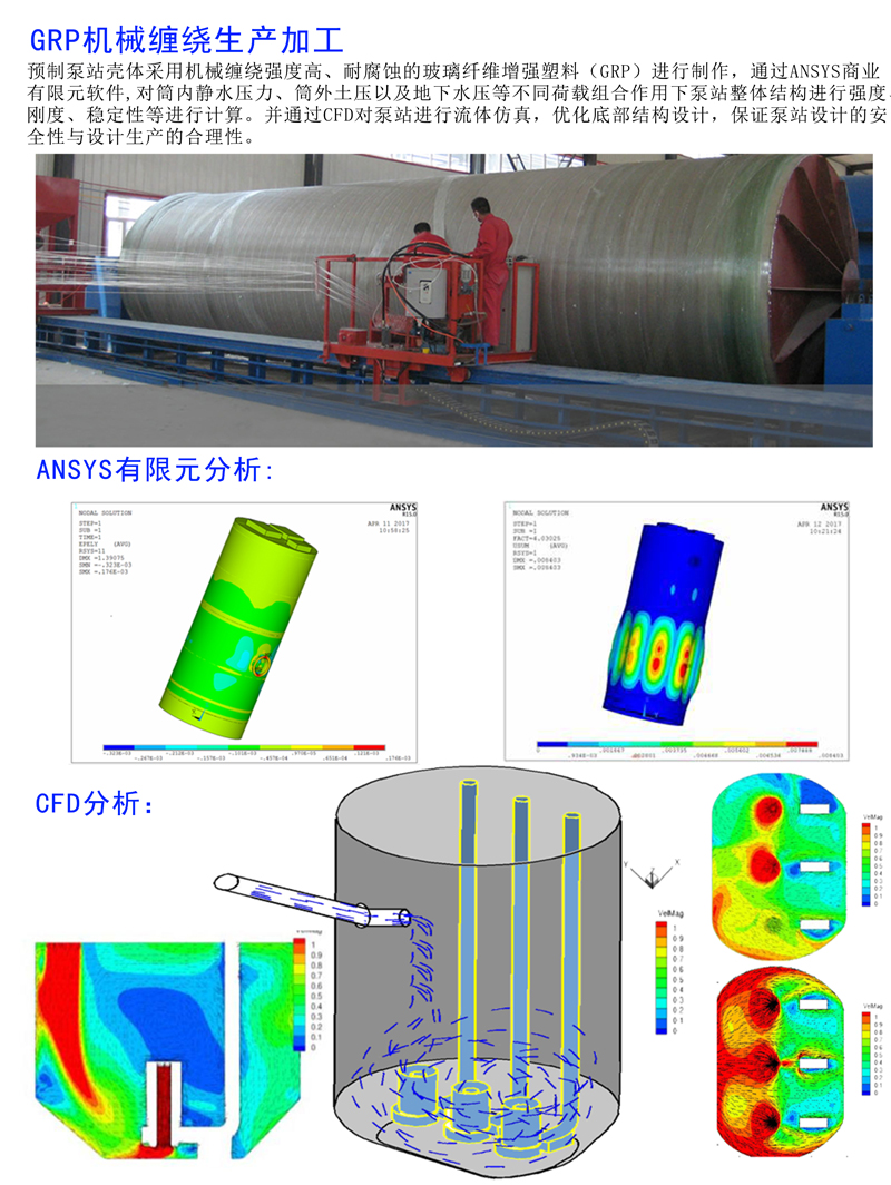 一體化預制式污水泵站主要配置及優點 防滑頂蓋:不銹鋼或玻璃纖維制成。可加裝防盜安全鎖??杉託鈮簭椈桑p松打開。 連續纏繞加強玻璃纖維筒體:優化設計,計算機控制纏繞工藝,確保厚度均勻并達到設計要求。質量穩定優良。 壓力管路:不銹鋼或客戶指定材料。所有管路在出廠前均通過壓力測試,以防泄漏。 進口管路可達DN300:通常為不銹鋼AISI304或316。可根據客戶要求配置各種法蘭。 控制柜:配合各種智能傳感器,可以實現無人值守、編程控制和遠程控制。 泵站上蓋:玻璃鋼或鋁制。鋁制安全格柵。不銹鋼通風排氣管。不銹鋼扶手。 不銹鋼安裝平板:方便未來的管路、水泵因為入流增大時升級。 內置服務平臺:可根據客戶要求定制,不同形式、位置和高度。
